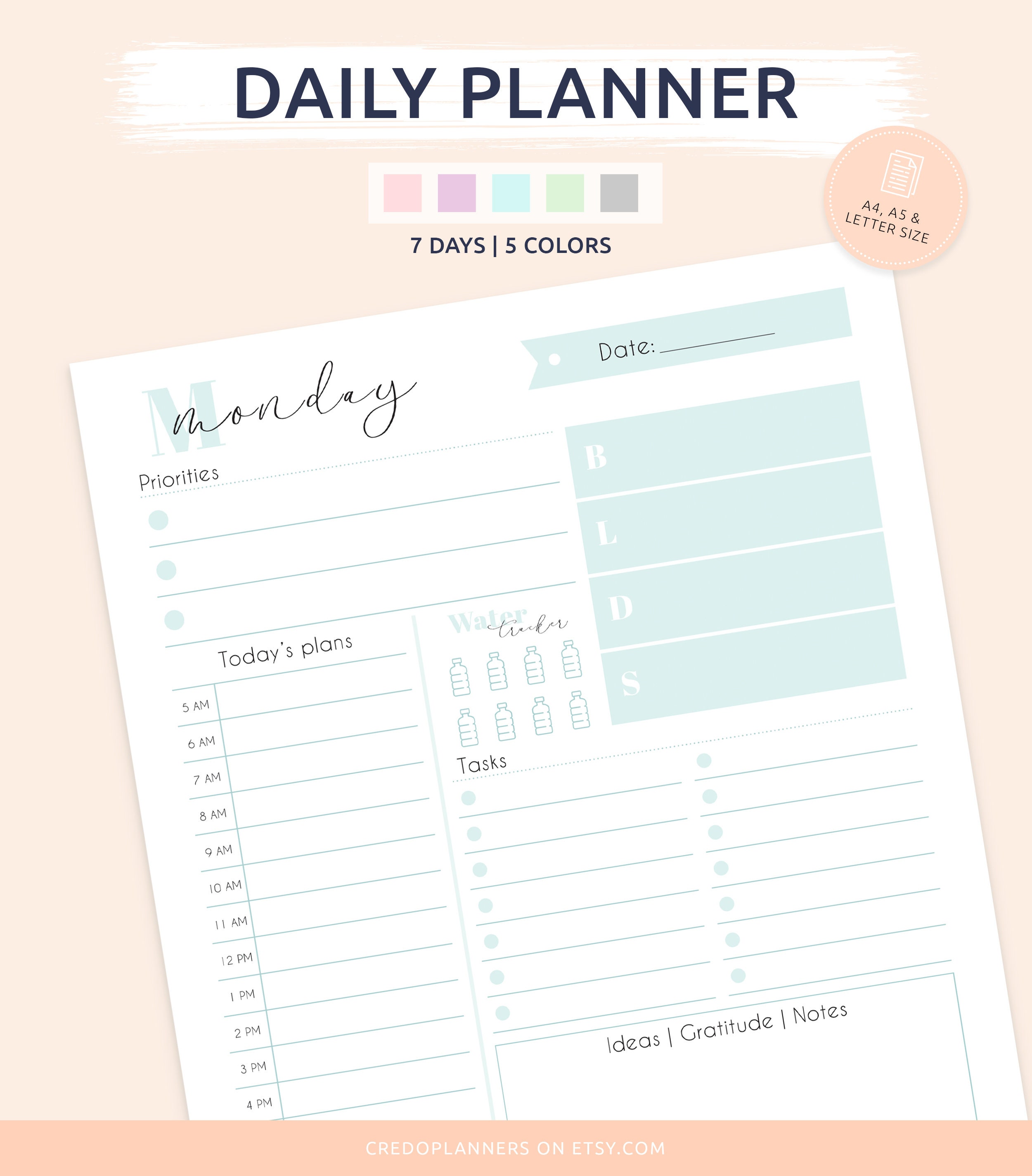 Daily Planner 7 Days A4 A5 & US Letter in 5 Colors Etsy Denmark