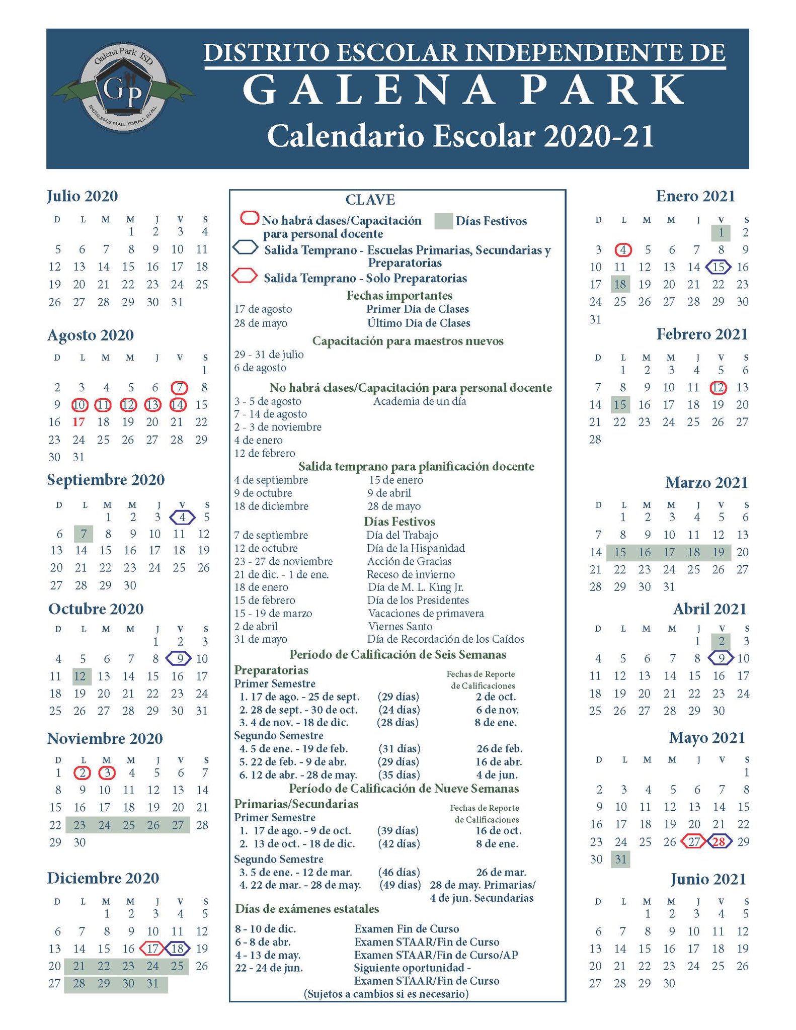 Galena Park ISD School Calendar/ Calendario Escolar | Facebook