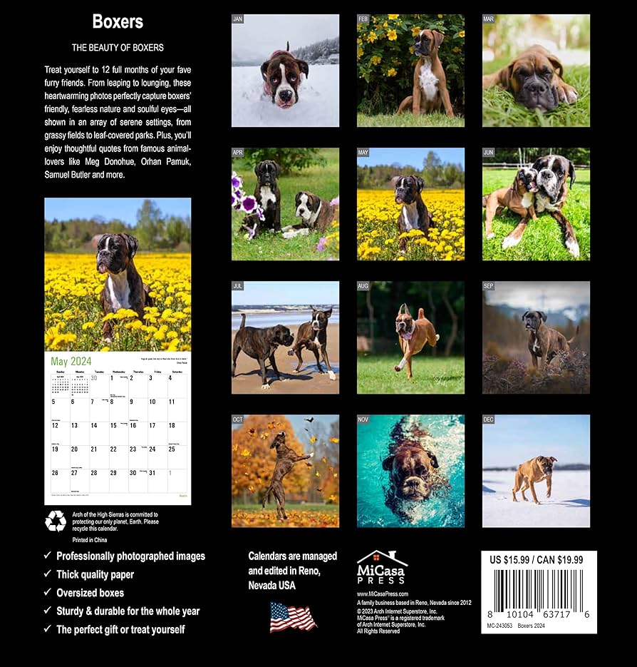 Amazon.com: MICASA Boxers 2024 Hangable Monthly Wall Calendar | 12